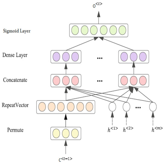 After producing the final output by hidden state, we incorporated an attention mechanism into the feature-attention process to assist the architecture in identifying stress detection by focusing on valuable information at the word-feature level. Our proposed mechanism utilizes a detailed attention structure, which is depicted in Figure 5, while Figure 5 illustrates the distribution of attention generated at a specific time step at by the attention mechanism as follows: