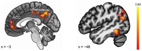 - Raichle, M.E. The brain’s default mode network. Annu. Rev. Neurosci. 2015, 38, 433–447. [Google Scholar] [CrossRef] [PubMed]