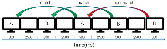 When the subjects formally started the 2-back task, each subject needed to complete two sets of experiments, as shown in Figure 1. In the four processes depicted in the figure, the EEG acquisition equipment is in the normal acquisition state, and it is synchronized with the 2-back experimental procedure to facilitate the segmentation of the experimental task.