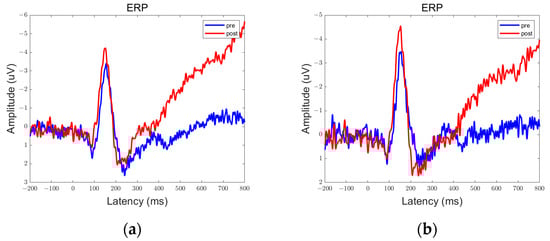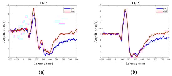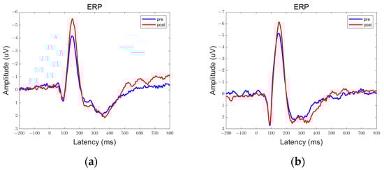 ERPs in the parietal lobe in the Group Sham. (a) P3; (b) P4.