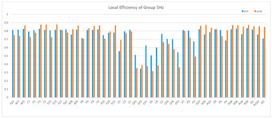 It can be observed that there is a significant difference before and after 5 Hz stimulation. The local efficiency of the central area was significantly lower after stimulation compared to before stimulation.