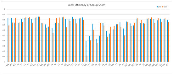 In terms of the local efficiency of the Alpha and Beta bands, we did not observe any significant changes before and after stimulation.