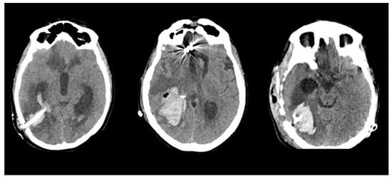 Moreover, anti-platelet medication has been unequivocally identified as a significant risk factor in several series []. However, in our series, none of these features were observed. Thus, catheter-related DICH differs from the classically described early hemorrhagic complications, as it does not appear to be associated with anticoagulation/antiplatelet therapy, liver disease, diabetes, or hypertension, as reported by Gong et al. []. Most reports described patients with normal coagulation blood test results.