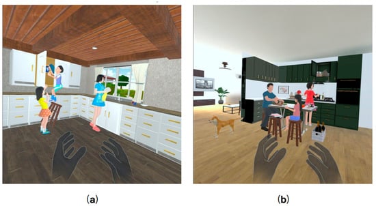 Two VR-based scene description task interface diagrams. (a) Task 1; (b) Task 2.