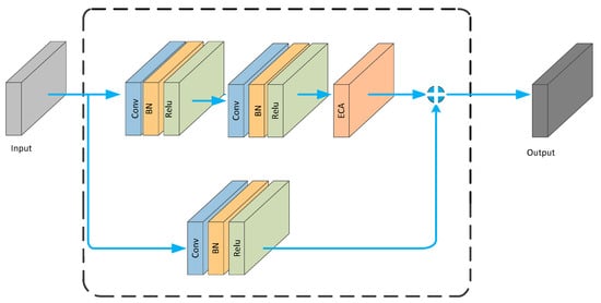 The ECA_block is embedded into the residual structure, resulting in the architecture shown in Figure 5.