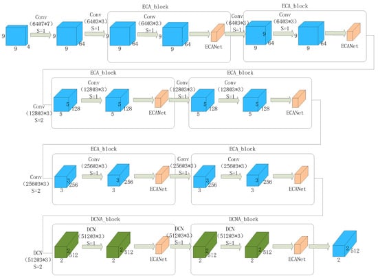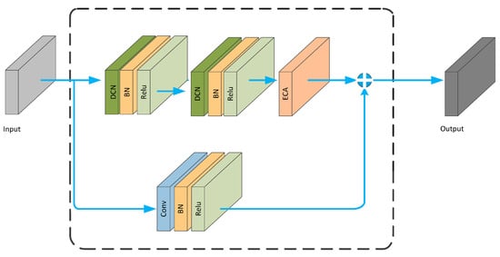 The DCN module is embedded into the ECA_block, resulting in the DCNA_block, as shown in Figure 7.