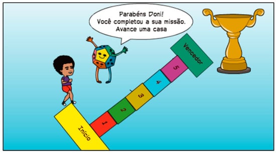 For this study, a comic story titled “The Adventures of Doni in the Mind-Connect Game” was created. This story, developed using the Pixton program, features the main character, a boy named Doni, as a model and narrator who encounters difficulties in achieving goals. Throughout the story, psychoeducational activities and the application of key GMT concepts are carried out, based on previous studies [19,20,22,25]. In the plot, Doni discovers a chest that serves as a gateway to the human board game, as illustrated in Figure 1. In this game, he encounters the “executive functions” team who seek help in their training.