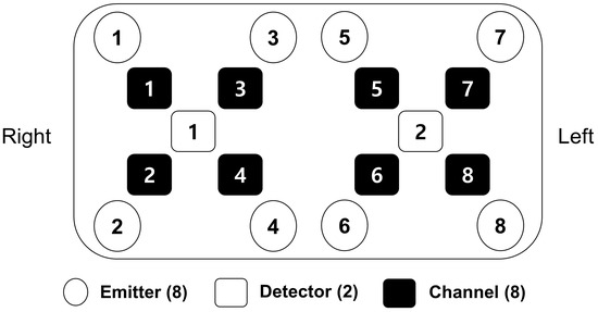 Figure 1. The placement of eight emitters, two detectors, and eight channels.