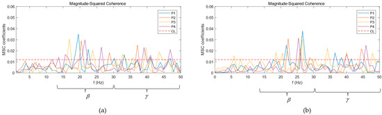 MSC is a method used to measure the degree of linear relationship between two signals at a specific frequency. It is widely used in the analysis of biological signals [23,25]. Its mathematical expression is as follows: