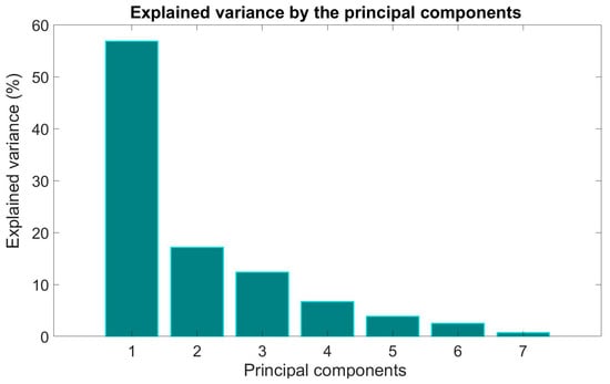 In Figure 5, the number of principal components obtained by the PCA and the variance explained by them is shown. Considering that the first component of the PCA explained more than half the variance, Figure 6 presents the biplot of the two principal components resulting from the PCA and the respective clustering.