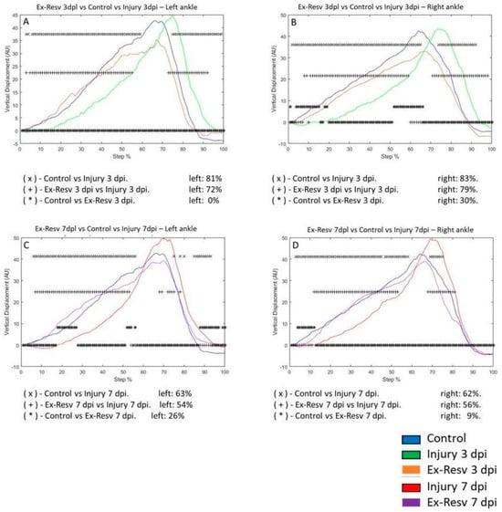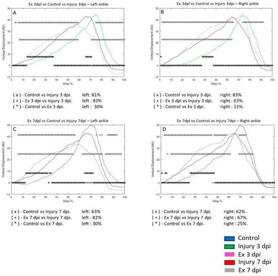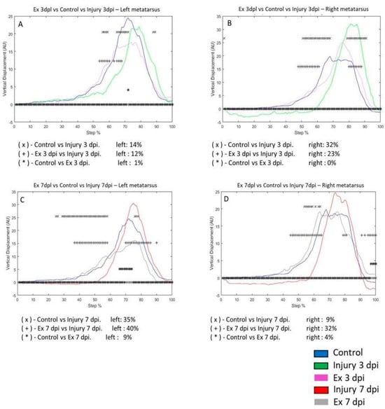 3.3. Exercise Modifies Vertical Displacement (VD) in the Metatarsus and Ankle Post-Injury