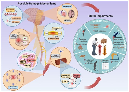 4. Potential Mechanisms Underlying Motor Impairments in Alzheimer’s Disease