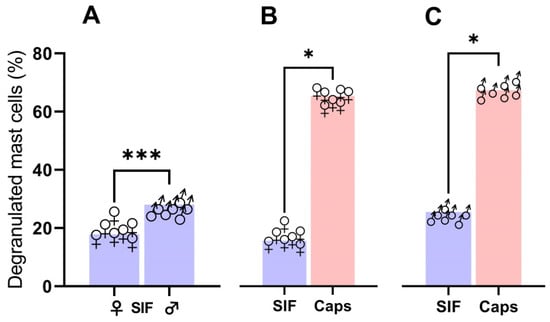 3.1. Capsaicin-Induced Mas Cell Degranulation in Both Sexes