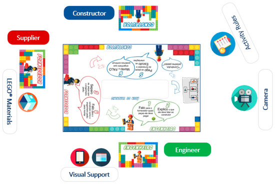 Three roles were played by all participants. The engineer observed the guide and explained to the supplier which pieces to separate and how they should be assembled. The supplier listened to the engineer’s instructions and, according to the request, separated and delivered the pieces to the builder, explaining how to assemble them. The builder received the pieces from the supplier and assembled the models according to the instructions received. Upon completing a step, the builder informed the team that they were ready for the next instructions. This step was repeated until the model was completed. Stage 5 (approx. 5 min): Session feedback where each child was encouraged to discuss their experience during the activity and record it. The researcher concluded the activities by placing a sticker on the child’s certificate according to rule compliance. Upon completing the stimulation sessions, the child received a participation certificate as a “LEGO® Builder”; Stage 6 (approx. 5 min): At the end of the session, participants removed their badges and disassembled the model together, organizing the materials.