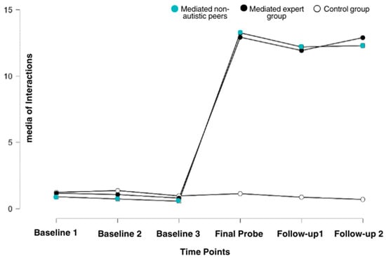 This study aimed to investigate the effectiveness of using a structured LEGO® stimulation protocol to promote social behaviors and positive mental health indicators in children with ASD. To this end, a previously tested protocol [34] was replicated and expanded, comparing, in the present study, three different groups: expert-mediated, peer-mediated, and control group. In addition, this study assessed the maintenance of these gains through two subsequent follow-ups.