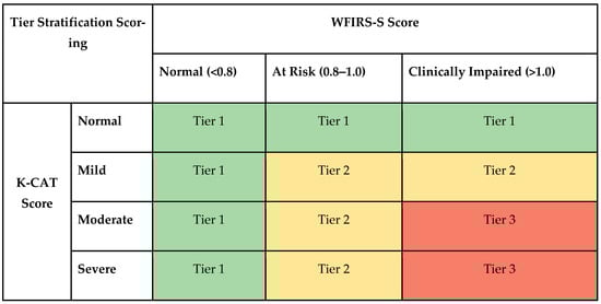 - Generation of a clinical risk score defined according to an algorithm that integrates the severity of symptoms and functional impairment as compared to national norms developed prior to the pandemic. In this risk score, Tier 1 was considered normal, Tier 2 was considered at risk (i.e., <2 diagnoses and functional impairment less than 1 SD outside the norm), and Tier 3 was considered clinically ill (i.e., two or more diagnoses rated moderate or severe with clinically significant functional impairment > 1.5 SD outside the norm).