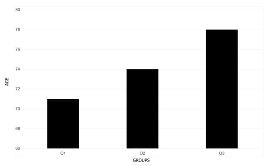 A total of 426 cases, aged 18–103 (median 74 years), 214 of which were men (50.23%), were enrolled in the study (Table 1). Patients were significantly younger during O1 than O3 (71 vs. 78 years) (Figure 2).