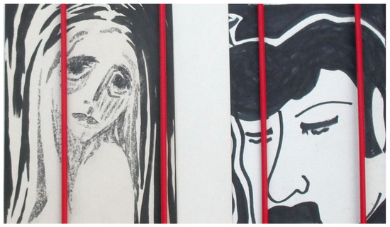 In summary, patients may use alcohol as self-medication for depression. Alcohol may cause excitation, disinhibition, and sedation in the short term but depression in the long term. Creativity may represent an expression of the diseased “inner self” and potentially an attempt at self-healing. Accordingly, Figure 5 and Figure 6 show the faces of persons in different mental states. Lastly, alcohol may elevate an individual’s expectation or self-perception of their own creative skills (not of their actual artistic accomplishment). Thus, creativity may be falsely attributed to the effect of the alcohol, which was likely the case in our patient in his youth and middle age. This conforms with the outcome of a study on artists, in which semi-structured interviews were employed, showing that artists reported an improvement in their self-perceived creativity through alcohol (e.g., half of the subjects saw alcohol as a source of inspiration) [77]. Later in life, the patient realized that alcohol impaired his abilities. Likewise, a study on motivation for therapy showed that the main reasons for accepting treatment were reductions in physical and mental capacities, as well as compromised wellbeing [78]. Patients suffering from alcoholism often attribute less control to themselves than to other individuals or external factors when compared to nonalcoholics. Moreover, patients who perceive greater control over their lives tend to have higher rates of therapy completion [79].