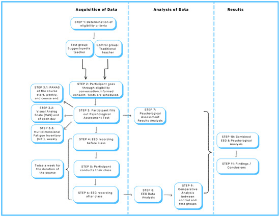 The proposed methodology extends the scientific research on neurocognition initiated by the Institute of Suggestopedia utilizing a combination of EEG, ECG, EMG data, psychological surveys, physiological examination and qualitative observations [43]. This methodology is structured within the following framework: