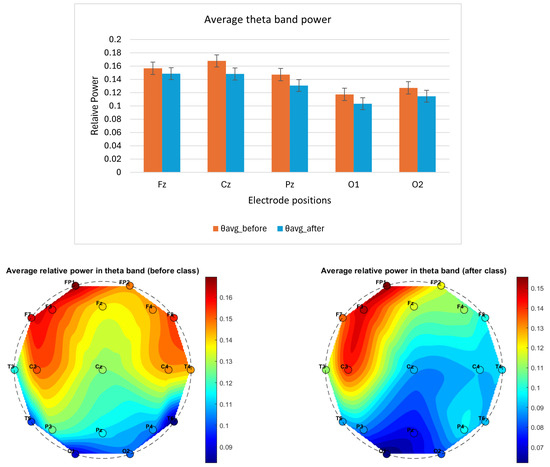 The psychological approach, employing validated questionnaires [60,61], provides subjective insight into participants’ cognitive states regarding fatigue and motivation. This complements the neurocognitive approach achieved through EEG analysis. A general questionnaire assessing the teacher’s positive and negative emotions is administered at both the beginning and end of the study. In addition, a more specific questionnaire assessing fatigue levels is administered following EEG recording sessions at the end of each week throughout the study. The interrelations between EEG bands, the alpha–beta ratio, and psychological tests facilitate a comprehensive analysis of the data, aiming to corroborate participants’ feedback with interpretations of brain activity.