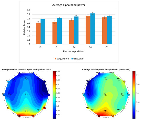 The neurocognitive evaluation of fatigue, by recording the resting state EEG activity of the participants in their own environment, prior to and after teaching is one of the novel approaches in our method that overcomes the limitation of a controlled and simulated laboratory environment. Neurocognitive analysis will be carried out using the interrelations between EEG bands. Specifically, heightened theta activity at the frontal, central and posterior sites is referred to as a robust biomarker of fatigue [52]. Interrelations between EEG bands emerge when other EEG bands are simultaneously observed for fatigue detection, assuming that they will converge toward a common inference. In this direction, the alpha activity will be evaluated, an increase in which the fatigue studies almost unanimously associate with fatigue. Research indicates that increased alpha activity can be a marker of a relaxed, alert mind, as mentioned in a 2007 study by Knyazev [63]. It is essential to consider the context and specific goals of Suggestopedia, which promotes a structured teaching and learning environment designed to prevent fatigue and promote alertness.