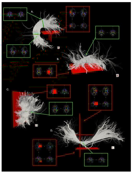 - Rheault, F.; Schilling, K.G.; Obaid, S.; Begnoche, J.; Cutting, L.E.; Descoteaux, M.; Landman, B.A.; Petit, L. The Influence of Regions of Interest on Tractography Virtual Dissection Protocols: General Principles to Learn and to Follow. Brain Struct. Funct. 2022, 227, 2191–2207. [Google Scholar] [CrossRef]