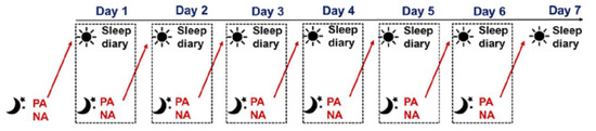 The 7-day data collection protocol. Notes. NA, negative affect; PA, positive affect.