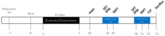 - Khalifeh, S.; Khodagholi, F.; Moghtadaei, M.; Behvarmanesh, A.; Kheradmand, A.; Ghazvini, H. Effects of Maternal Deprivation on Anxiety, Depression, and Empathy in Male and Female Offspring of Wistar Rats in the Face of Novel Objects. Galen Med. J. 2019, 8, e1093. [Google Scholar] [CrossRef]
