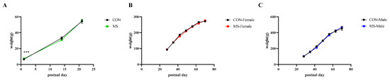 3.1. Effect of One-Week MS on Body Weight of Offspring Rats