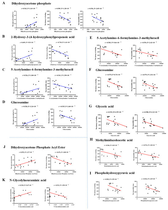 3.6.5. Correlation Analysis of Behavior Data and Hippocampal Metabolites