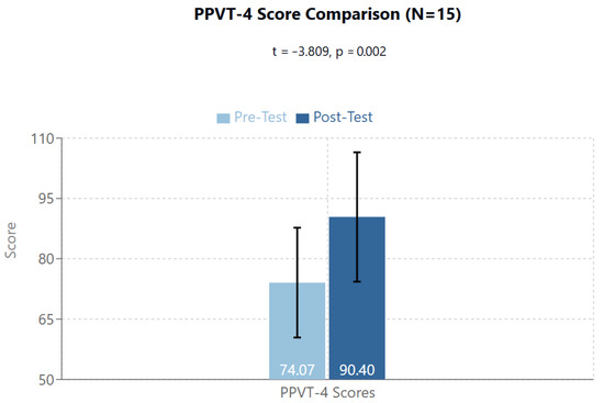 The Peabody Picture Vocabulary Test-4 shows significant difference between Pre- and Post-test t = −3.809, p = 0.002.