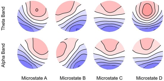 Spatial configuration of the four microstate classes in the theta and alpha bands.