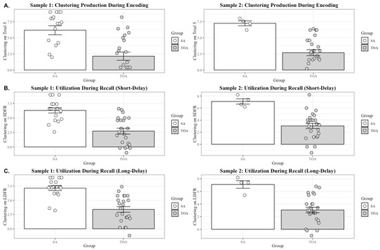 3.3.2. Results from Semantic Clustering Strategy Utilization during Long-Delay Free Recall