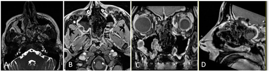 - Oakley, G.M.; Harvey, R.J. Endoscopic Resection of Pterygopalatine Fossa and Infratemporal Fossa Malignancies. Otolaryngol. Clin. N. Am. 2017, 50, 301–313. [Google Scholar] [CrossRef]