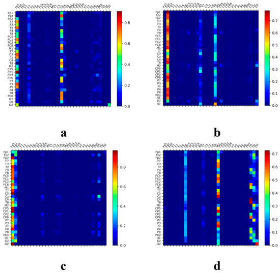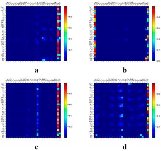 Here, denotes the position in feature map G at the t-th time under frequency band b and likewise represents the position in feature map F at the t-th time under frequency band b. signifies the influence or contribution of position in feature map G to position in feature map F. In other words, this value represents the model’s degree of attention to information in different brain areas. A high degree of attention suggests that the information in this area is strongly correlated with the task status.