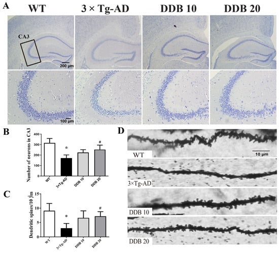 APA StyleZhang, W., Huang, J., & Shi, J. (2024). Dendrobine Ameliorates Alzheimer’s Disease-like Pathology and Cognitive Decline in 3 × Tg-AD Mice. Brain Sciences, 14(3), 231. https://doi.org/10.3390/brainsci14030231