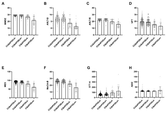 - Foster, J.K.; Albrecht, M.A.; Savage, G.; Lautenschlager, N.T.; Ellis, K.A.; Maruff, P.; Szoeke, C.; Taddei, K.; Martins, R.; Masters, C.L.; et al. Lack of reliable evidence for a distinctive epsilon4-related cognitive phenotype that is independent from clinical diagnostic status: Findings from the Australian Imaging, Biomarkers and Lifestyle Study. Brain 2013, 136 Pt 7, 2201–2216. [Google Scholar] [CrossRef]