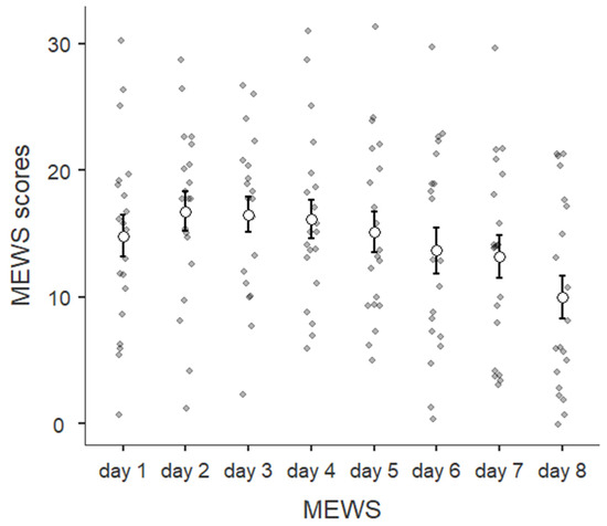 Due to the limited sample size, we could not perform a confirmatory factor analysis [45,46,47]. However, to verify the reliability of the new modified scale, Cronbach’s Alpha was calculated for each day, highlighting excellent internal consistency (all α ≥ 0.9).