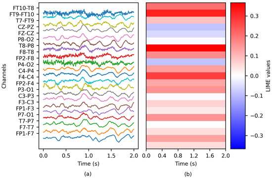 The application of LIME to an EEG epoch: (a) the ictal EEG window of patient chb01 and (b) the matrix of LIME values.