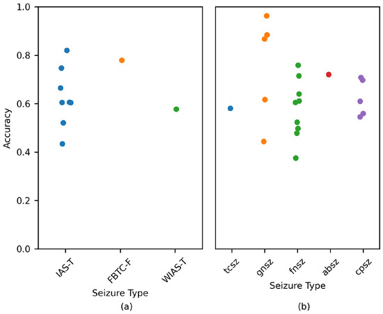 Moreover, the TUSZ-related values spanned an extensive range, meaning that the model was able to achieve good performance for some patients while showing poor results for others. As displayed in Table 4, the models tended to be more sensitive than specific. As mentioned before, it is important to consider that the TUSZ dataset contains both pediatric and adult patients; thus, such heterogeneity may be reflected in the dispersion of the prediction performances.