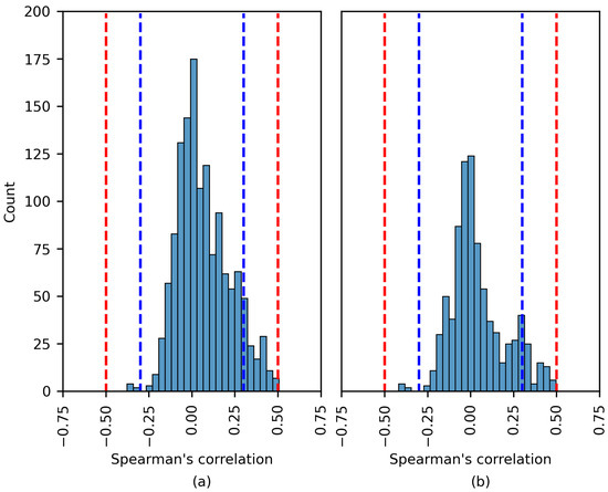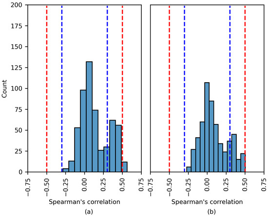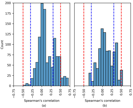 In line with the above, the Spearman’s rank correlation coefficient between the XAI-generated importance values and the EEG features was computed. As previously stated, this coefficient measures the strength of a monotonic relationship.