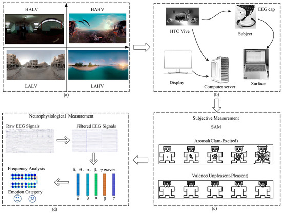 - Li, M.; Pan, J.; Gao, Y.; Shen, Y.; Luo, F.; Dai, J.; Hao, A.; Qin, H. Neurophysiological and subjective analysis of VR emotion induction paradigm. IEEE Trans. Vis. Comput. Graph. 2022, 28, 3832–3842. [Google Scholar] [CrossRef] [PubMed]