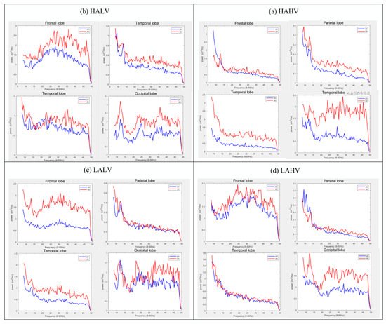 We computed the PSD of each subject across different frequency bands, which reflects the distribution of signal power in the frequency domain [30,31]. Subsequently, we utilizde the PSD to compare differences in brain activation between the two modes.