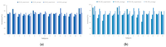 Average accuracy and standard deviation in VR-2D and VR-3D modes.