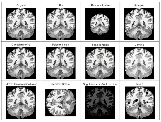 Mild cognitive impairment (MCI) is considered as a prodromal stage of Alzheimer’s disease based on clinical symptoms [1]. It is also a transitional period between healthy aging, where cognitive decline is a normal phenomena, and dementia [2]. MCI usually impacts cognitive abilities such as reasoning, memory, and logic [3]. People with this condition are usually forgetful, and need more time to think or express certain thoughts. However, they do not need assisted living facilities, because they are able to take care of themselves in everyday life. People with MCI may or may not convert to Alzheimer’s disease [4,5,6] or dementia [4]. The condition every year affects millions of people worldwide and attracts large investments from governments into research and drug production. There is no cure for this disease; however, certain treatments can reduce symptoms if applied on time. Therefore, early diagnosis is crucial, which allows patients and their caregivers enough time to prepare for the future. However, currently, there is no standardized assessment that would allow one to accurately diagnose MCI [7]. Due to this fact, researchers try to find new ways to accurately detect MCI via a vast number of different data modalities, for example, electroencephalogram (EEG) [8], 18F fluoro-deoxy-glucose positron emission tomography (FDG-PET) [9], cerebrospinal fluid (CSF) biomarkers [10], natural language [11], or T1w and T2w MRI [12,13]. Neuroimaging markers are becoming more popular and show great potential towards accurately identifying MCI [14,15]. Certain structural changes in the brain are present when a patient has MCI, for example, a decrease in gray matter volume in the medial temporal lobe [16] and hippocampal, entorhinal cortex atrophy with cortical volume decrease [17,18]. The task of detecting MCI is challenging, because it usually affects elderly people, and it is hard to distinguish if changes in the brain volume are impacted due to normal aging [19] or due to MCI, since some of the regions, for example, the temporal lobe, show a volume decrease in both scenarios. Therefore, it is crucial for the tools to not only focus on the specific known regions of interest (ROI), but also to incorporate other regions of the brain, which may have a correlation to the presence of MCI. Particularly, enhancing smaller regions with finer details in MRI may allow diagnostic tools such as deep learning (DL) models to find other important regions and more accurately detect MCI.