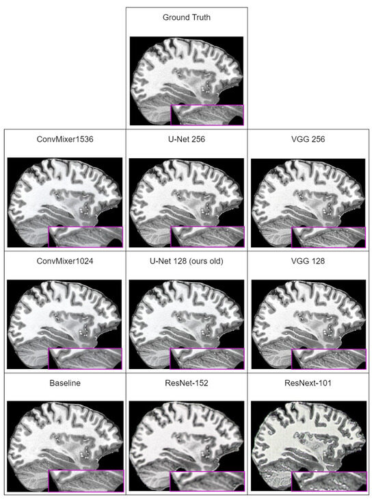 For the super-resolution model improvements, we used the same ultra-high-resolution MRI dataset “human phantom” [52] that we used in our previous work [25]. (Dataset available online: https://datadryad.org/stash/dataset/doi:10.5061/dryad.38s74—accessed on 5 March 2024). All of the preprocessing steps were also unchanged.