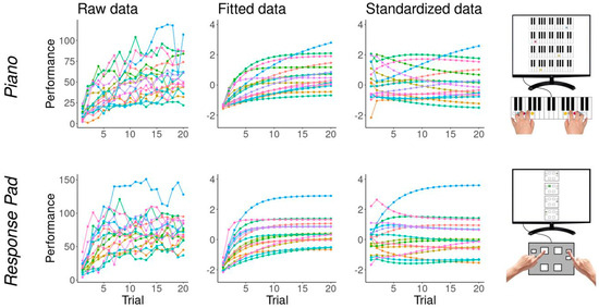 - Landau, S.M.; D’esposito, M. Sequence learning in pianists and nonpianists: An fMRI study of motor expertise. Cogn. Affect. Behav. Neurosci. 2006, 6, 246–259. [Google Scholar] [CrossRef] [PubMed]