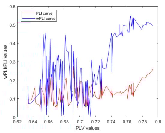 Trend chart of the wPLI and the PLI with respect to the PLV.