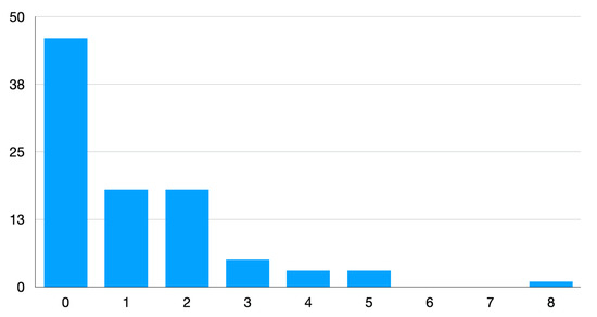 Distribution of the number of SWS segments that ended with movement over the course of SWS segments in the sample of n = 94 patients. The y-axis represents the number of patients (max n = 94) and the x-axis represents the number of SWS segments.