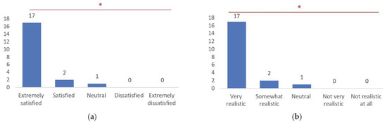 Overall satisfaction related to the utilization of 3D models for medical training (a); and realism of the 3D models (b). *, statistically significant differences recognized by chi-square test (p < 0.001).